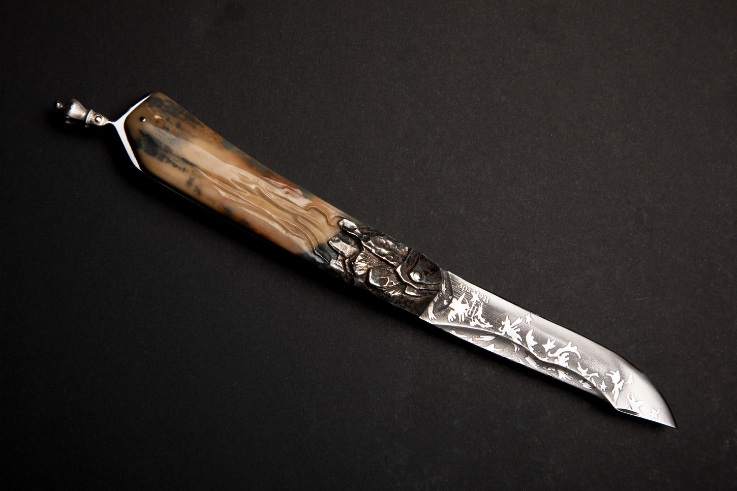 This work is not a knife, but a three-dimensional landscape painting forged into form. French Maître d’Art Pierre Reverdy condenses the sky, mountains, and eagles into a palm-sized object, allowing the viewer to hold the raw, magnificent power of nature in a single hand.
